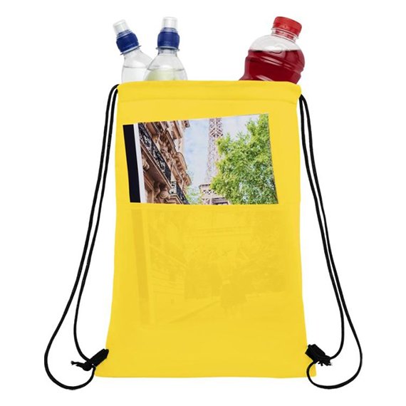 Tämä kätevä ja tyylikäs laukku on suunniteltu pitämään juomasi viileinä, jotta voit nauttia raikkaista juomista missä ja milloin tahansa. Laukussa on musta kiristysnauha, joka tekee sen kantamisesta ja kuljettamisesta helppoa ja voit keskittyä hauskanpitoon. Laukkuun mahtuu 12 tölkkiä, joten se on täydellinen retkille, piknikeille tai rannalle. Vetoisuus 5 l. Valmistettu kestävästä ja laadukkaasta 210D polyesteristä. Saatavilla useissa väreissä - valitse juuri sinun tyyliisi sopiva!