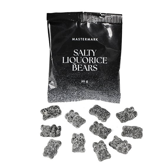Nämä lakritsinallet yhdistävät intensiivisen lakritsin maun ripaukseen suolaa, luoden karkin, joka on ainutlaatuinen ja täysin vastustamaton. Täydellinen vaihtoehto, kun kaipaat jotain erilaista ja persoonallista naposteltavaa – suolaiset lakritsinallet koukuttavat ja piristävät makuaistisi. Hinnat sisältävät 4-väripainatuksen pussiin. Säilyvyysaika 12 kk. Pussin koko 100 x 75 mm, sisältö 20 g.