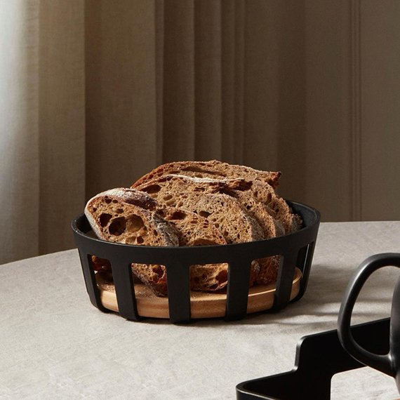 Ajaton ja näyttävä Nordic Kitchenin -leipäkori kruunaa kattauksen ja tuo syvyyttä sisustukseen. Leipäkorissa yhdistyvät kauniisti mattamusta kehikko sekä bambuinen alusta. Täytä leipäkori tuoreilla sämpylöillä tai aseta hedelmät kauniisti esille. Bambua suositellaan öljyämään säännöllisesti. Materiaali: muovi, FSC-sertifioitu bambu. Mitat: korkeus 7 cm ja halkaisija 21,5 cm.