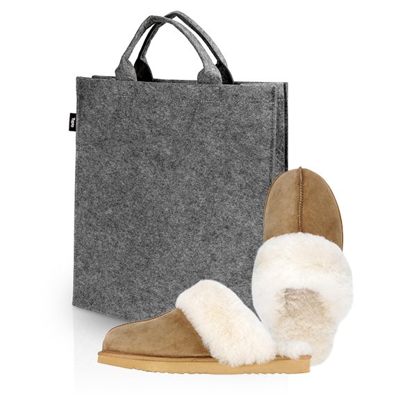 Lahjasetti sisältää lämpimät ja mukavat lampaan villasta valmistetut slip-on -sisätohvelit sekä tyylikkään huopakassin, joka on täydellinen säilytykseen tai lahjapakkaukseksi. Yhdessä ne tuovat pehmeyttä ja käytännöllisyyttä arkeen ja rentoutumiseen.