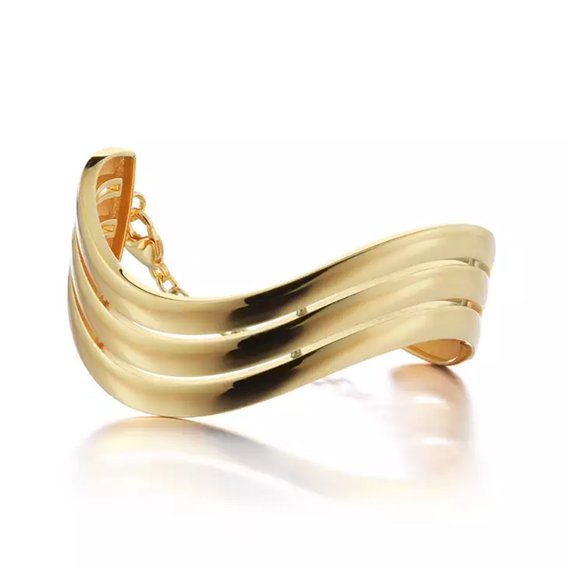 Pue yllesi keltakullattu Aaria-rannekoru ja ole juhlien jumalatar! Aaria-korusarja on ajaton ja raikas kokoelma upeita koruja. Tästä näyttävästä rannekorusta ja sarjan isoista korviksista syntyy upea juhlalook, ja sinut varmasti huomataan. Rannekorun leveys on 18mm ja sitä on saatavilla kahdessa koossa Ø59mm ja Ø64mm. Rannekorun takaosassa on ketju, jolla se lukitaan kiinni. Ketjun avulla rannekoru asettuu hyvin ranteeseen ja koru tuntuu mukavalta käytössä. Kuten kaikki korumme, myös Aaria-korusarjamme tuotteet valmistetaan vastuullisesti 100% kierrätetystä hopeasta ja kullasta omalla korutehtaallamme Kuopiossa.