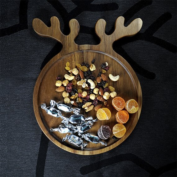 Pyöreä akaasiapuinen tarjoilualusta sarvikahvoilla. Tässä uniikissa tarjoilualustassa yhdistyvät luonnonmateriaalien kauneus ja pohjoisen inspiroima muotoilu. Täydellinen tarjoiluun, kattaukseen tai lahjaksi luonnonläheistä estetiikkaa arvostavalle.