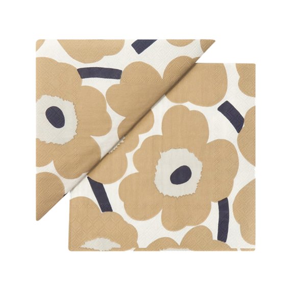 Näyttävät Marimekon Unikko lautasliinat. Klassisen kuosin suunnitteli Maija Isola vuonna 1964. Kotimaiset lautasliinat ovat Havin valmistamat ja ne ovat painettu Imatralla 3-kertaiselle pehmopaperille. Lautasliinoille on myönnetty Avainlippu, Joutsenmerkki ja FSC. Koko 24 cm.