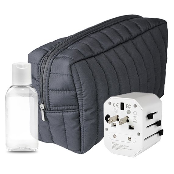 Lahjasetti sisältää käytännöllisen toilettilaukun, monipuolisen adapterin ja raikkaan käsigeelin, jotka tekevät matkustamisesta vaivatonta. Täydellinen valinta järjestyksen ja puhtauden ylläpitämiseen matkoilla.
