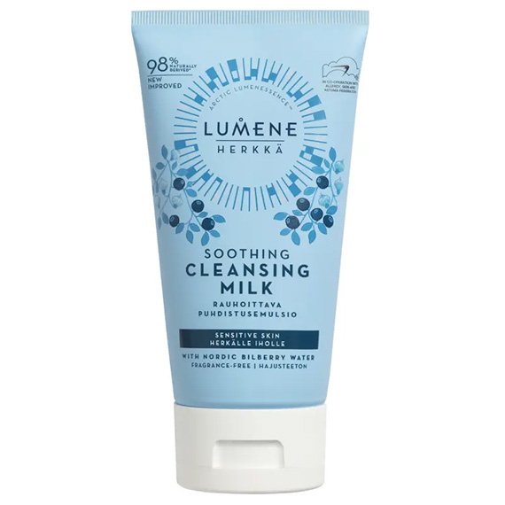 Tämä maitomainen, pohjoista mustikkavettä ja lähdevettä sisältävä puhdistusemulsio puhdistaa meikit ja epäpuhtaudet, ärsyttämättä herkkää ihoa. Hellävarainen koostumus rauhoittaa ja hoitaa ihoa jättäen sen miellyttävän ja kosteutetun tuntuiseksi. Astma-, iho- ja allergialiiton kanssa yhteistyössä kehitetty, hajusteeton koostumus sopii herkälle iholle. Tuote on 100 % vegaaninen. 150 ml.