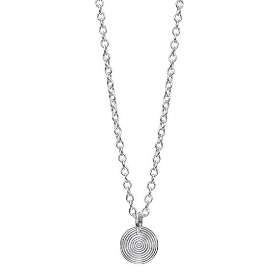 Pieni Kosmos-riipus on valmistettu viileästi välkehtivästä hopeasta. Riipus on kuvioitu molemmin puolin. Ankkuriketjussa säädettävä pituus 42/45/50 cm, jousirengaslukko.