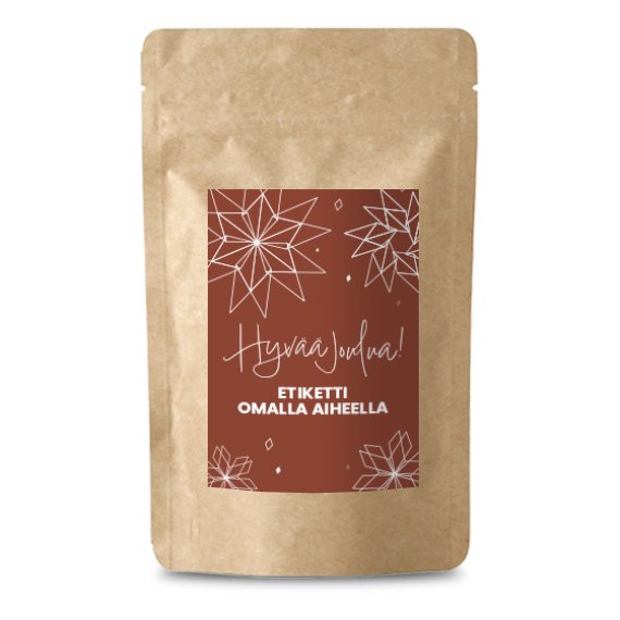 Brändipussin hinta sisältää neliväripainetun etiketin. Minimitilausmäärä 50 kpl. Hinta sisältää tarran, sen kiinnityksen ja pakkaustyön. Koko 16 x 23,5 cm.