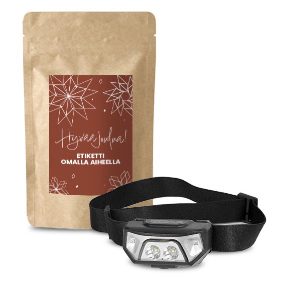 Setti sisältää paperipussin, jossa on yksilöllinen etiketti. Etiketin suunnittelu ja kiinnitys sekä pakkaustyö sisältyy hintaan. Minimitilausmäärä 50 kpl.