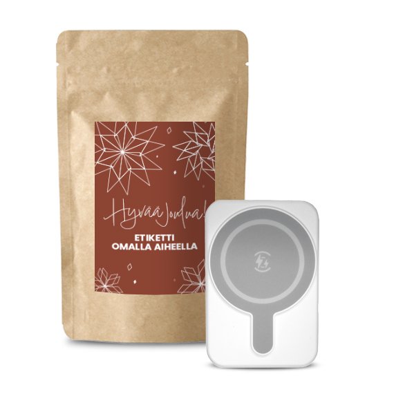 Setti sisältää paperipussin, jossa on yksilöllinen etiketti. Etiketin suunnittelu ja kiinnitys sekä pakkaustyö sisältyy hintaan. Minimitilausmäärä 50 kpl.​