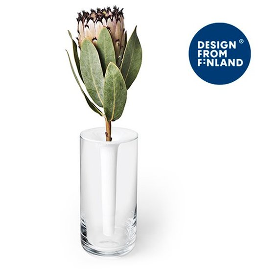 Kukalle-maljakko on uutta suomalaista muotoilua, jossa korostuu moderni virtaviivaisuus ja käytännönläheisyys. Maljakko on suunniteltu korostamaan siinä pidettävien kukkien parhaita puolia muodollaan ja skandinaavisella minimalismillaan. Maljakkoa voi käyttää joko suppilon kanssa, jolloin yksittäinen kukka tai puun oksa pääsee todella oikeuksiinsa, tai sitä voi käyttää ilman suppiloa, kun tarvitset kauniin maljan kukkakimpulle. Kukalle-maljakko on valmistettu perinteisellä suupuhallusmenetelmällä, joten jokainen Kukalle-maljakko on uniikki oma taideteoksensa. Design: Antonio Gurrola & Dario Vidal. Kukalle on Mastermark Oy:n järjestämän Suomi 100 -juhlavuoden suunnittelukilpailun voittajatyö. Korkeus: 26 cm.