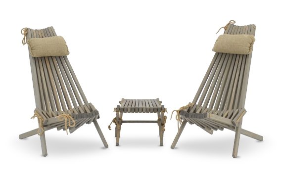 Ekotuoli on ainutlaatuisen mukava puusta sekä juutti- ja hamppunarusta valmistettu lepotuoli. Käytä tyylikästä Ekotuolia sisällä tai ulkona - puu kestää suomalaiset sääolosuhteet. Säilytystä varten tuoli taittuu helposti kasaan. Tuolin korkeus 120 cm, leveys 90 cm. Setti sisältää kaksi tuolia tyynyllä sekä Ecofurn Lilli -sivupöydän/rahin. Rahin mitat 40 x 40 x 40 cm.