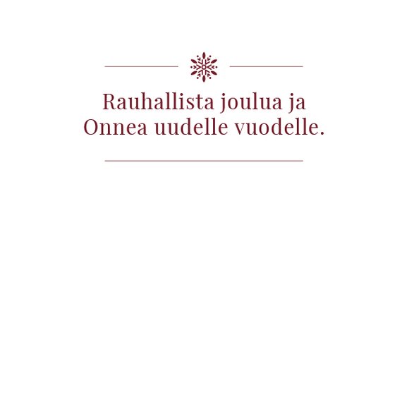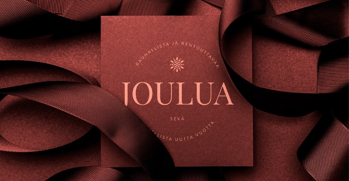 Kaksipuolinen joulukortti omalla logolla ja tervehdyksellä. Viimeistele lahjasi kauniilla kortilla. Itse kirjoitettu tervehdys ilahduttaa ja lämmittää lahjan saajan mieltä.