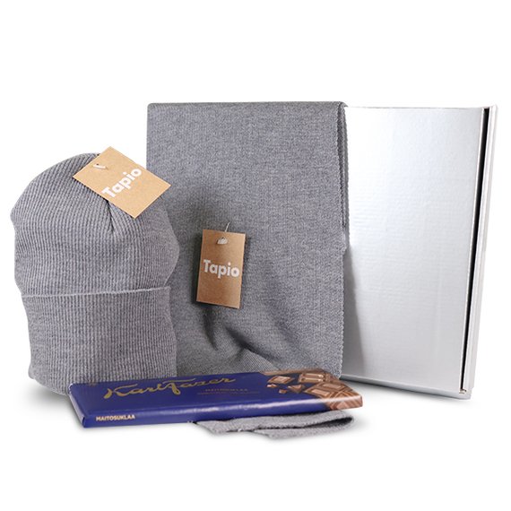 Merinovillaiset mutta kevyet Tapio-pipo ja -kaulaliina lämmittävät viileinä syyspäivinä ja sopivat asuun kuin asuun. Tuotteet valmistetaan Suomessa. Setin viimeistelee kotimainen Fazerin perinteinen maitosuklaalevy. Hinta sisältää pakkaustyön ja postituspakkauksen.