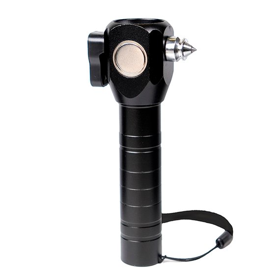 Ladattava taskulamppu, hätävasara, turvavyöleikkuri sekä magneettikiinnitys samassa paketissa. Hätävasaralla rikot hädän tullen vahvemmankin ikkunan. Alumiinisessa taskulampussa on valonlähde sekä lampun päässä (150 lumenia) että sen sivussa (120 lumenia). Päässä olevan valon saa myös vilkkumaan. Lampussa 550 mAh sisäänrakennettu akku. Max painoala 25 x 15 mm.