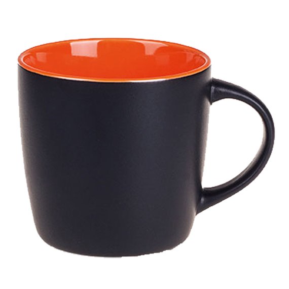 Erittäin suosittu mainosmuki, jossa on moderni, matta lasite. Kiiltävä, värikäs sisäpuoli luo erinomaisen kontrastin mustan satiinisen ulkopinnan kanssa. Toimitusaika vedoksen hyväksymisestä noin 5 vkoa. Hinnat sisältävät mukin ilman painatusta, pyydäthän tarjouksen haluamallesi painatukselle erikseen.