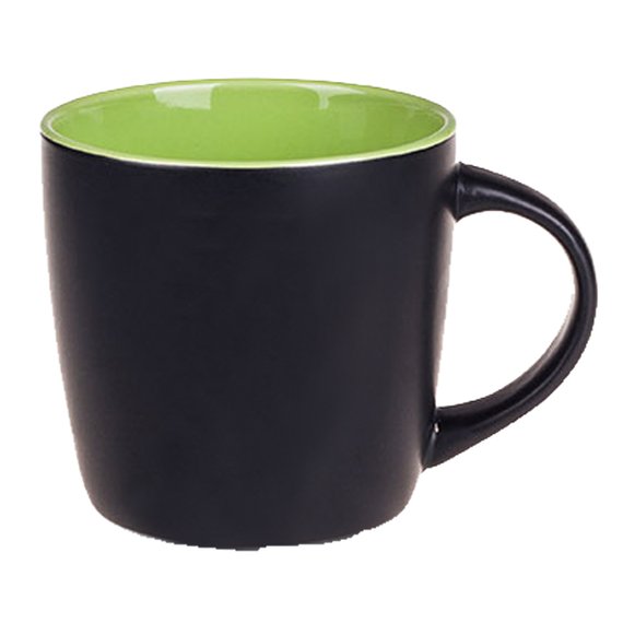 Erittäin suosittu mainosmuki, jossa on moderni, matta lasite. Kiiltävä, värikäs sisäpuoli luo erinomaisen kontrastin mustan satiinisen ulkopinnan kanssa. Toimitusaika vedoksen hyväksymisestä noin 5 vkoa. Hinnat sisältävät mukin ilman painatusta, pyydäthän tarjouksen haluamallesi painatukselle erikseen.