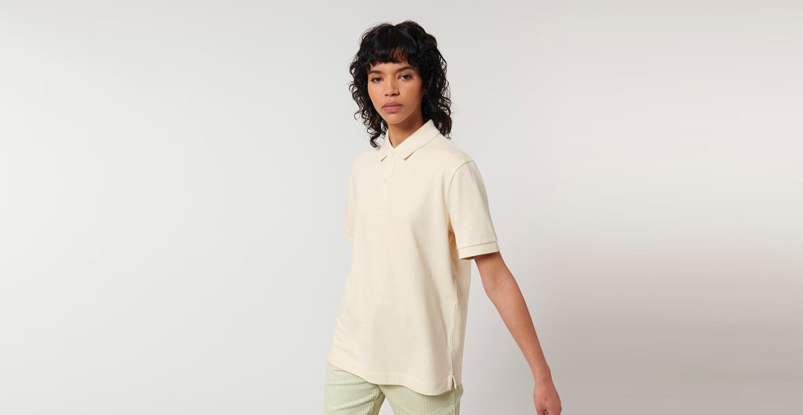 Pikeepaita 100 % orgaanisesta, rengaskehrätystä kampapuuvillasta. Joustinneuletta kauluksessa ja hihansuissa. Paino 230 g/m². Koot XXS-5XL.