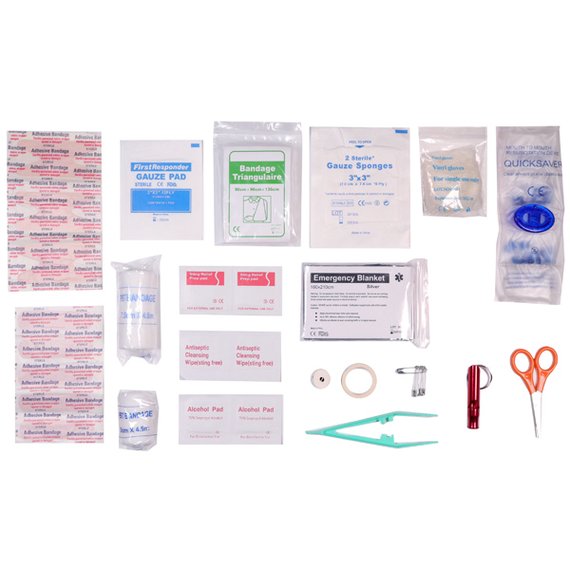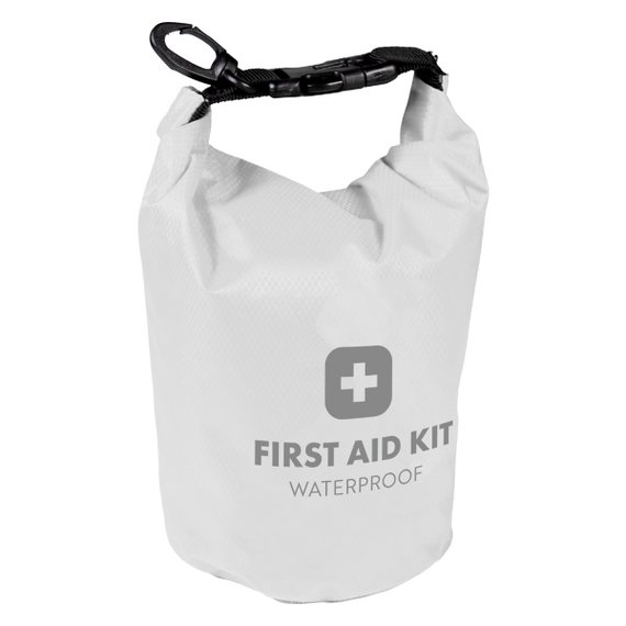 Vahingon sattuessa on tärkeää saada apua nopeasti. Tämä kattava ensiapulaukku on täydellinen mukaan otettava myös veneretkelle, sillä se on vedenpitävä. Laukku sisältää sideharsoa, suusta suuhun hengitysmaskin, kertakäyttökäsineet, puhdistuspyyhkeitä, desinfiointipyyhkeitä, hyönteislaastareita, hätähuovan, kantoliinan, harsolappuja, laastareita, kiristyssiteen, sakset, muovipinsetit, hätäpillin, lääketeipin ja hakaneuloja. Laukun tilavuus 1,5 litraa, koko 12 x 25 cm.