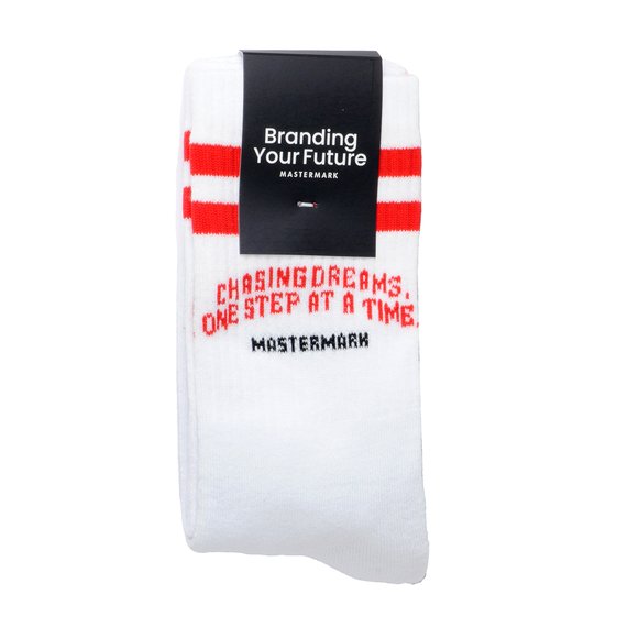 Urheile brändiväreissä. Logokudotun sukan varressa on pehmeä resori sekä frotee-pehmustin jalkaterässä ja kantapäässä. Materiaali 80 % puuvillaa, 15 % polyamidi ja 5 % elastaani. Valmistettu sertifioidusta langasta. Koot 35/38, 39/42, 43/46.Huom. Minimitilaus 100 paria ja 50 paria/koko. Hinnat sisältävät logokudonnan sukkaan sekä kustomoidun sukkalapun. Maksimi värien määrä 6.