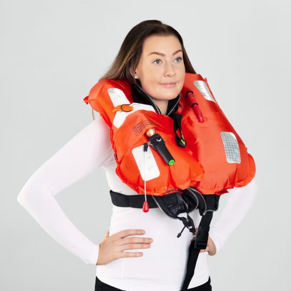 Automaattinen laukaisu kun tulee kosketukseen veden kanssa (ei laukea sadevedestä). Liivi täyttyy kolmessa sekunnissa.