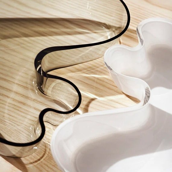 Alvar Aallon luomasta epäsymmetrisesti aaltoilevasta muodosta on tullut yksi modernin pohjoismaisen muotoilun klassikoista vuoden 1937 Pariisin maailmannäyttelyssä saadun kansainvälisen huomion jälkeen. Suomalaisen luonnon vaikutteet näkyvät Aallon klassikkoesineissä, joissa veistoksellinen muoto yhdistyy funktionaalisuuteen. Jokainen kulho valmistetaan yksittäin monivaiheisessa tuotantoprosessissa Iittalan lasitehtaalla. Lasiesine suupuhalletaan, irrotetaan lasimassasta käsin katkaisemalla ja hiotaan lopulliseen muotoonsa. Kirkas Aalto-kulho on raikkaan moderni sisustusesine, joka soveltuu myös kattaukseen. Se on kaunis lahjaesine tai tarjoiluastia kuiville elintarvikkeille, kuten hedelmille tai makeisille.