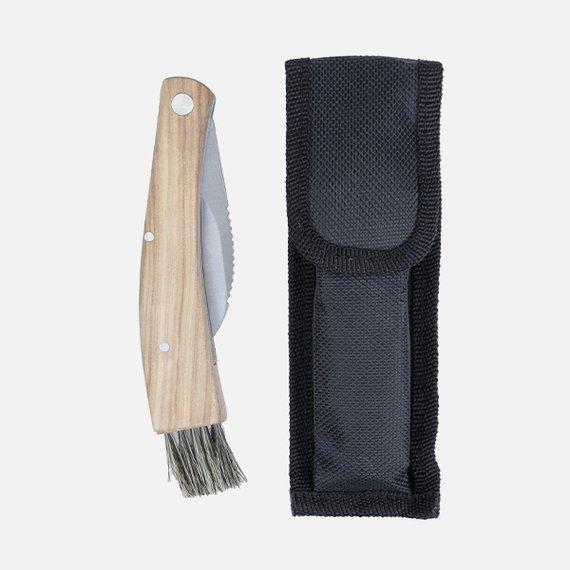 Sienestäjän unelma työkalu. Taitettava sieniveitsi mahtuu tarvittaessa pienen kokonsa ansiosta retkeilijän taskuun. Kaareva terä on valmistettu ruostumattomasta teräksestä ja kahva luonnonkuviollisesta puusta. Veitsen harjakset ovat valmistettu villisian karvasta. Mukana musta polyesteri säilytyskotelo.