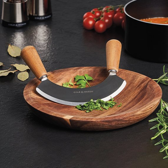 Luonnollisen kaunista puuta ja tyylikästä metallinkiiltoa. Yrttileikkurin kahvat ja leikkuualusta on valmistettu luonnollisesta akaasiapuusta. Puuosat on elintarviketurvallisella öljyllä pintakäsitellyt. Yrttileikkurin terä on valmistettu m 420J2 SS ruostumattomasta teärksestä tehden siitä vahvan ja kulutusta kestävän.