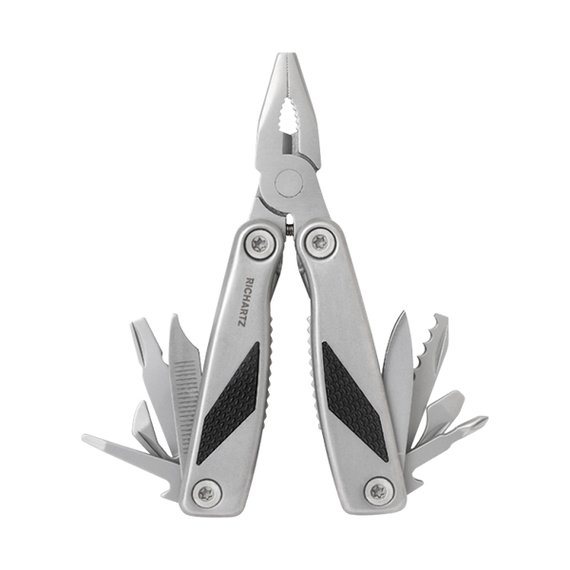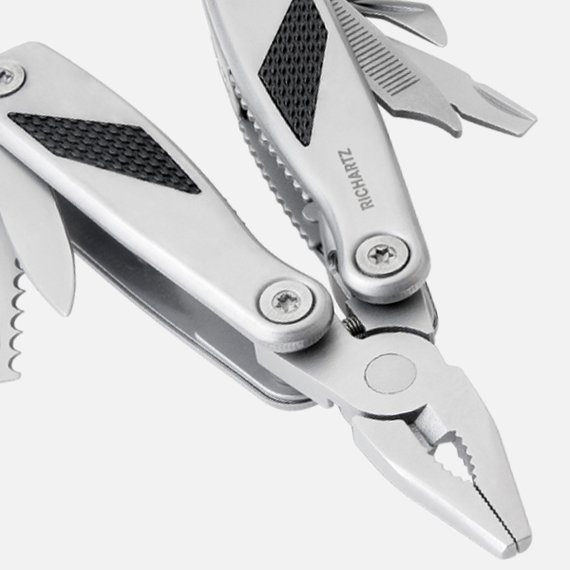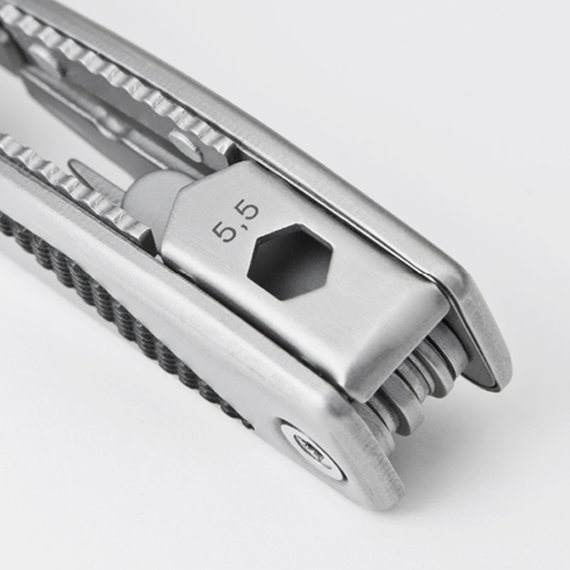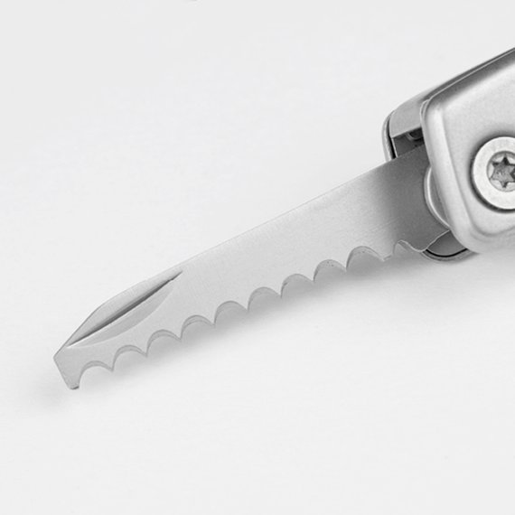 Pieni mutta korvaamaton monitoimityökalu, joka on valmistettu korkealaatuisesta mattapintaisesta ruostumattomasta teräksestä. Kätevän kokoinen työkalu, joka sujahtaa helposti taskuun. Pienet, erittäin hyödylliset valetut pihdit, joissa on lankaleikkuri, kaksi terää, joista toisessa on sahalaitainen reuna, kaksi litteäkärkistä ruuvimeisseliä, litteäkärkinen ruuvimeisseli/kantinostinyhdistelmä, ristipääruuvitaltta, tölkinavaaja, viila ja hihnapussi vakuuttavat päivittäisessä käytössä. Kahvaan integroidut kaksi kuusikulmaista kantaa täydentävät työkalun korkean toiminnallisuuden.
