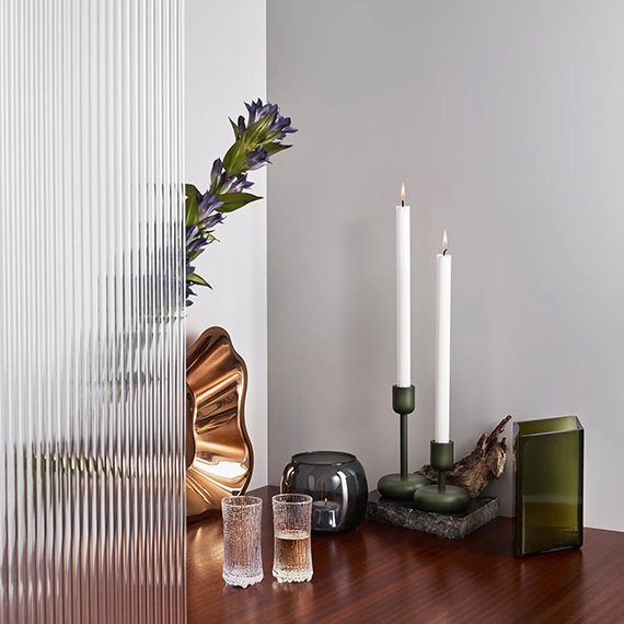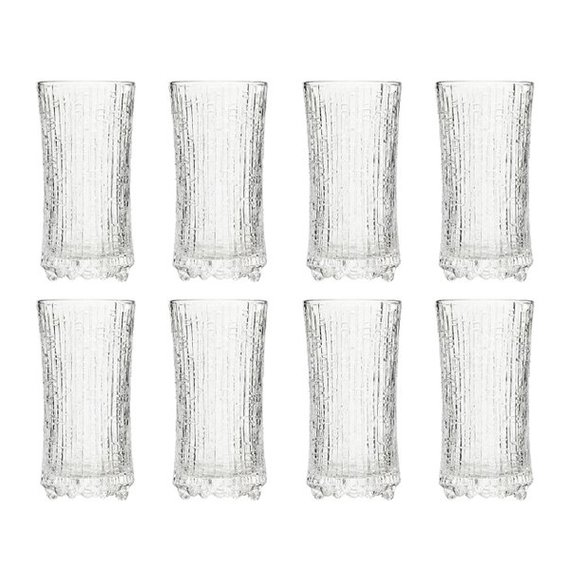 Wirkkalan laajaan tuotantoon kuuluu lukemattomia klassikoita huonekaluista ja designtuotteista seteleihin. Wirkkala uudisti lasinpuhalluksen perinnettä klassisella Ultima Thule -sarjallaan. Wirkkala käytti Iittalan lasitehtaan lasinpuhaltajien kanssa lähes tuhat työtuntia uuden tekniikan kehittämiseen. Näin saadaan aikaan lasia, jonka pintarakenne jäljittelee muotoilijaa inspiroinutta jäätä ja pohjoisen lumihankia. Ultima Thule -lasistossa on pyöristetty pohja, jota kannattelevat jalat näyttävät sulavalta jäältä. Ultima Thule -sarja tuo sisustukseen sävyjä arktisesta luonnosta. Suomalaisessa lasistossa taidelasin vaativa valmistustekniikka yhdistyy funktionaalisuuteen. Lasistosta tuli kansainvälinen klassikko, kun Finnair alkoi käyttää laseja ensimmäisessä luokassa. 18 cl Ultima Thule -kuohuviinilasi sopii samppanjalle, kuohuviinille ja siiderille. Setti sisältää 8 lasia.