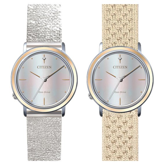 Upea naisten rannekello, jonka runko on valmistettu ruostumattomasta teräksestä. Kello toimitetaan kahdella eri rannekkeella. ( ECOPET®-ranneke, joka on vastuullisesti valmistettu kierrätetyistä materiaaleista sekä hopeanvärinen ruostumaton mesh-ranneke). Monivärinen kellotaulu, jossa on yksi timantti. Kellossa on E031-kaliiberin Eco-Drive-koneisto. Koneisto ottaa virtansa valosta ja kestää täyteen ladattuna jopa 180 päivää. Ominaisuuksiin kuuluu alhaisen varaustason hälytin ja ylilatauksen estotoiminto. Rannekello on 50 m / 5atm vesitiivis. Rungon leveys 34 mm. Rannekkeen pituus 140-200 mm ja leveys 18 mm.