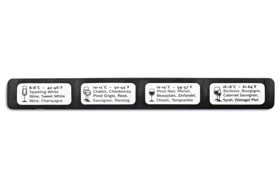 Viinilämpömittari näyttää viinipullojesi lämpötilan, jotta viinisi tarjoillaan oikeassa lämpötilassa. Voit taittaa lämpömittarin helposti minkä tahansa viinipullon ympärille. Lämpömittarin näyttö näyttää pullon nykyisen lämpötilan Celsius-asteina. Mittarin takaosasta löydät eri viinien suositellut tarjoilulämpötilat. Kompaktin ja kevyen rakenteen ansiosta mittaria on helppo kuljettaa, mukava käyttää ja säilyttää. Täydellinen vempain viinin ystäville! Mitat 8,5 x 25,7 x 1,2 cm.