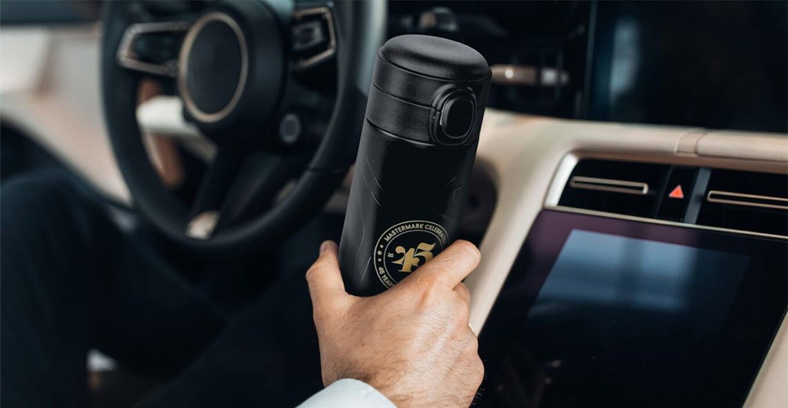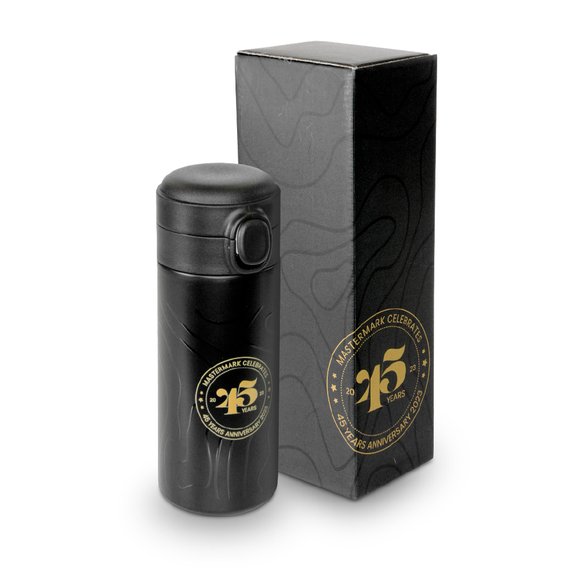 Minimitilausmäärä 24 kpl. Toimitusaika n. 5 viikkoa. Esimerkkihinnat sisältävät termosmukin ja personoidun pakkauksen, merkkaukset termosmukiin erikseen.