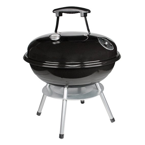 Grilli kuumaksi ja herkuttelemaan! Tapio pallogrilli on raudasta valmistettu 14" hiiligrilli, jossa on lämpömittari, grilliritilä, hiiliritilä, tuhka-astia ja ilmansäätöventtiilit. Grillissä on neljä jalkaa ja bakeliitista valmistettu lämpöä kestävä kahva. Grillausala on 35 cm. Lämpömittarin asteikko 0-400°C / 50-750°F.