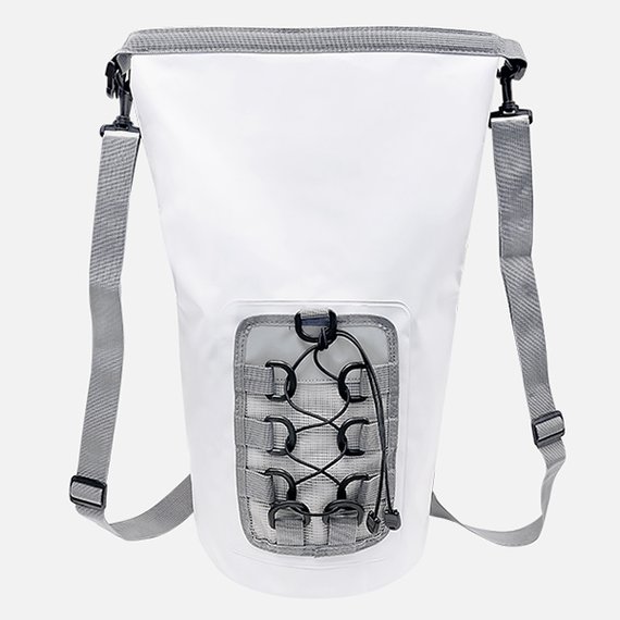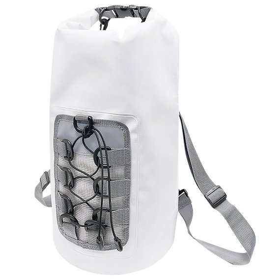 Loistava tuote vesiurheilijoille, mökkeilijöille tai reissaajille. Repussa on rullaustekniikalla ja soljella toimiva sulku, joka tekee repusta vedenpitävän. Dry bag on loistava kevään ja kesän varuste, sillä repussa saa pidettyä tärkeimmät tavarat turvallisesti mukana kosteissa ja muuttuvissa sääolosuhteissa. Repussa irrotettavat ja säädettävät olkaimet. Repun edestä löytyvä kuminauha ristikko tarjoaa säilytystilaa myös repun ulkopuolella. Valmistettu 500D PVC polyesteristä. Tilavuus 15 L. Mitat 21 x 55 cm.