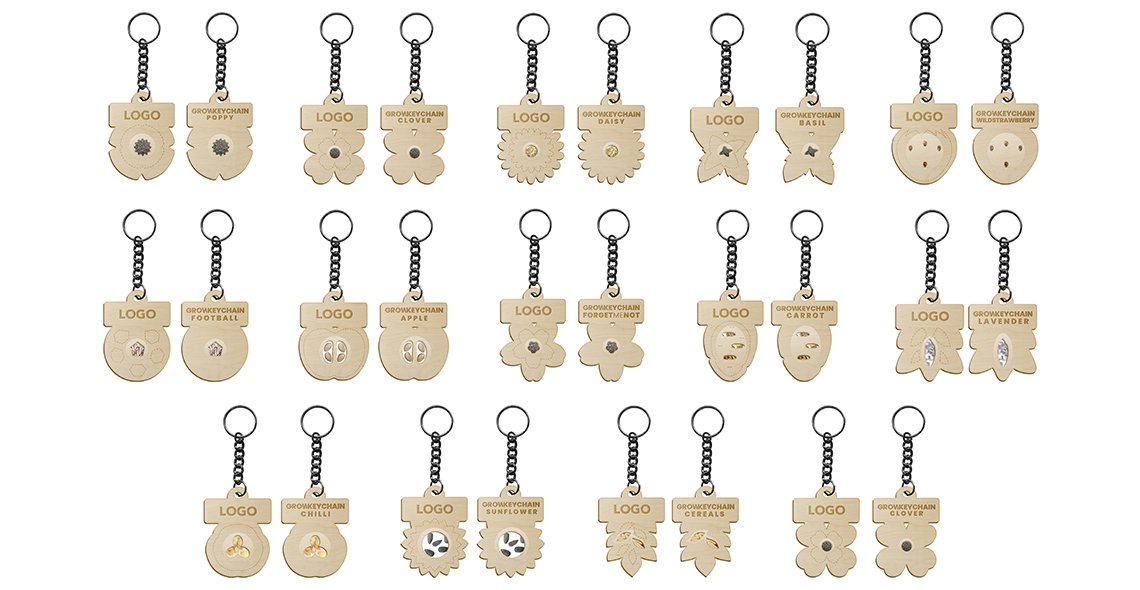 Ympäristöystävällinen männystä valmistettu puinen avaimenperä valitsemillasi siemenillä. Avaimenperä toimitetaan FSC-sertifioidusta 100 % kierrätetystä paperista valmistetussa pakkauksessa. Viimeistele tuote logokaiverruksella. Saatavilla 14 eri muotoa ja siemenvaihtoa.