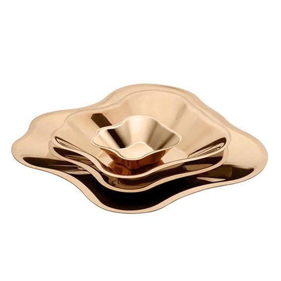 Alvar Aallon suunnittelema metallinen klassikkotuote ruusukullan sävyssä. Aalto-kulho on monikäyttöinen sisustusesine, joka soveltuu myös kattaukseen. Vain käsinpesu. Mitat 358 x 351 x 28 mm. Paino 751 g.