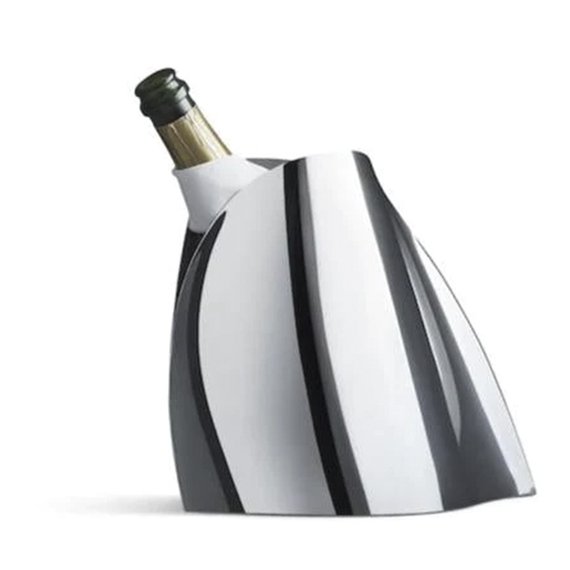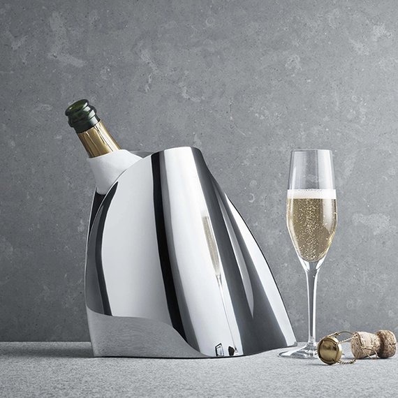 INDULGENCE-samppanjajäähdytin jäähdyttää samppanjasi tyylikkäästi ja varmistaa, että kuplasi pysyvät viileinä, kun olet poksauttanut korkin ja kaatanut ensimmäisen lasillisen. Samppanjanjäähdytin on valmistettu kiillotetusta ruostumattomasta teräksestä ja näyttää kauniilta ruokapöydällä. Sen viisto muoto pitää pullon täydellisessä kulmassa, jotta pullo on helppo poistaa jäähdyttimestä. Koko: korkeus 225 mm, leveys 280 mm, halkaisija 155 mm.