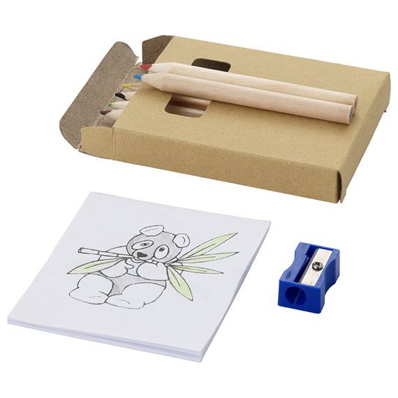 Setti sisältää 6 värikynää, teroittimen ja värityskirjan. Laatikon koko 72 x 90 x 14 mm. Hinnat sisältävät 1-väripainatuksen aloituskuluineen värikynien laatikkoon.