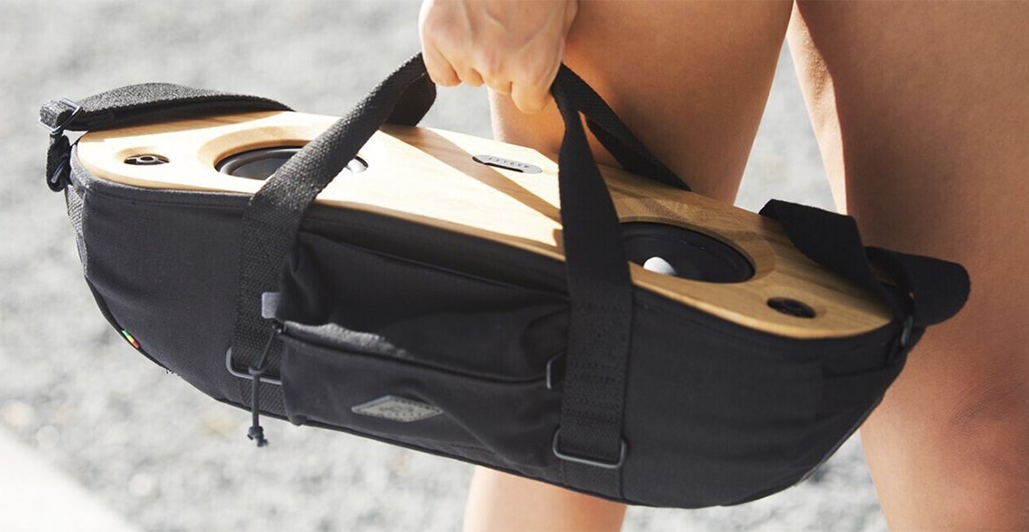 Marleyn Bag Of Riddim bluetooth kaiutin tuottaa lämmintä tasaista ääntä. Tuotteessa on 2 kpl laadukasäänistä 1,0" diskanttikaiutinta ja 2 kpl 4,0" Basso Woofer kaiutinta. Kaiuttimen sisäänrakennetun akun avulla voit nauttia jopa 10 tunnin musiikin kuuntelusta yhdellä latauksella, lataus 4 tuntia. Kaiuttimessa on integroitu aux-syöttö, joka mahdollistaa monen laitteen liittämisen, kun taas sisäänrakennettu USB-portti on mukana helppoa lataamista varten. Mukana on kantokassi olkahihnalla.