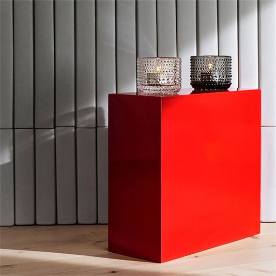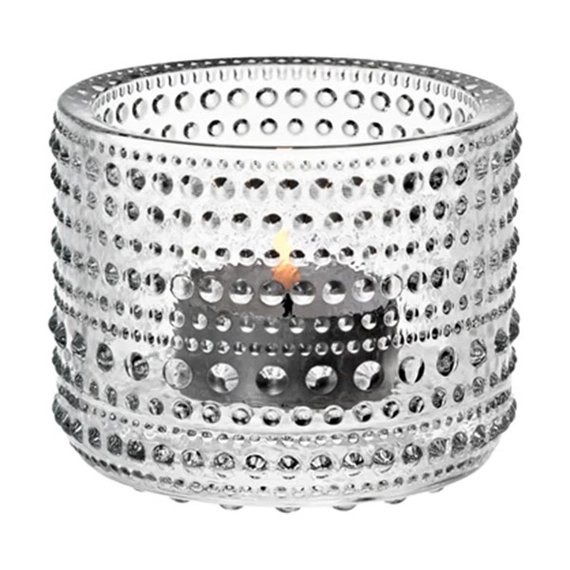 Klassikko muotoilijan Oiva Toikan kokeilujen tuloksena syntyi uudenlainen pisarakoristeluun perustuva Kastehelmi-sarjan pintastruktuuri. Vuonna 1964 Toikka halusi peittää puristelasiin jäävät saumakohdat. Näin syntyi Kastehelmi-sarja, jonka pinnalla loistavat lasihelmet muistuttavat aamuauringossa kimaltavaa kastetta. Monikäyttöisten lyhtyjen pintarakenteessa lasipisarat heijastavat kauniisti valoa. Kirkas Kastehelmi-kynttilälyhty luo lämpimän tunnelman. Kaunis yksin tai eriväristen kynttilälyhtyjen ryhmässä. Mitat 7,67 x 6,4 cm. Paino 309 g. Valmistettu Suomessa Iittalan lasitehtaalla. Vain käsinpesu.