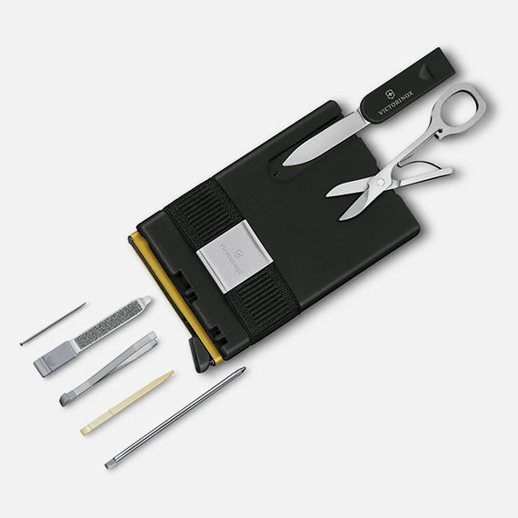 Korttilompakko, rahalenkki ja integroitu monitoimikortti yhdessä paketissa! RFID-suojattu korttilompakko tarjoaa kuudelle eri kortille turvallisen säilytystilan. Lompakon napin painalluksella saat käyttöösi koteloon varastoidut kortit porrastetusti ja kätevästi. Rahalenkki pitää setelit turvallisesti paikoillaan. Tuotteen viimeistelee 8 integroitua työkalua: hammastikku, pinsetit, kuulakärkikynä, kynsiviila, ruuvimeisseli (2,5 mm), neula, sakset ja pieni terä. Mitat 65 x 104 x 17 mm. Paino 81 g.