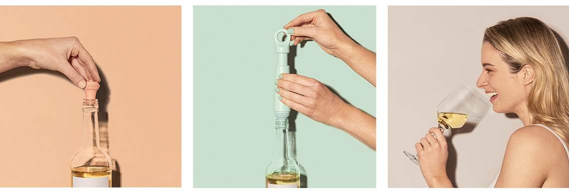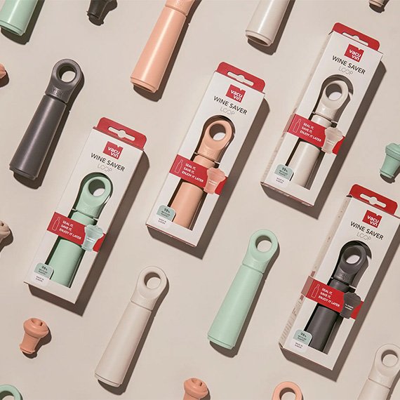 Säilö avattu viini helposti ja laadukkaasti Loop viinipumpun avulla. Avattu viini altistuu hapelle, joka muuttaa viinin herkkää aromirakennetta. Viinipumpulla avatusta viinipullosta imetään pois ilma, joka muuten pilaisi viinin lyhyessä ajassa - tai vähintään muuttaisi viinin makua merkittävästi. Pullon tehokkaan sulkemisen takaa viinipumpun kanssa käytettäväksi tarkoitetut viinistopperikorkit. Kun korkki ei ole käytössä, säilöt sen kätevästi viinipumpun loop-renkaaseen. Tyylikäs Vacu Vinin viinipumppu on valmistettu kierrätysmuovista. Mitat 160 x 35 mm.