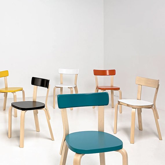 Tuoli 69 on yksi suosituimmista Alvar Aallon ruokailutuoleista, ja sen yksinkertainen mutta eloisa ilme sopii myös muiden huoneiden sisustukseen. Tuoli 69:ssä on muihin Aalto-tuoleihin verrattuna leveämpi selkänoja ja istuin, jotka tekevät siitä miellyttävän paitsi ruokailuun myös työskentelyyn ja oleskeluun.